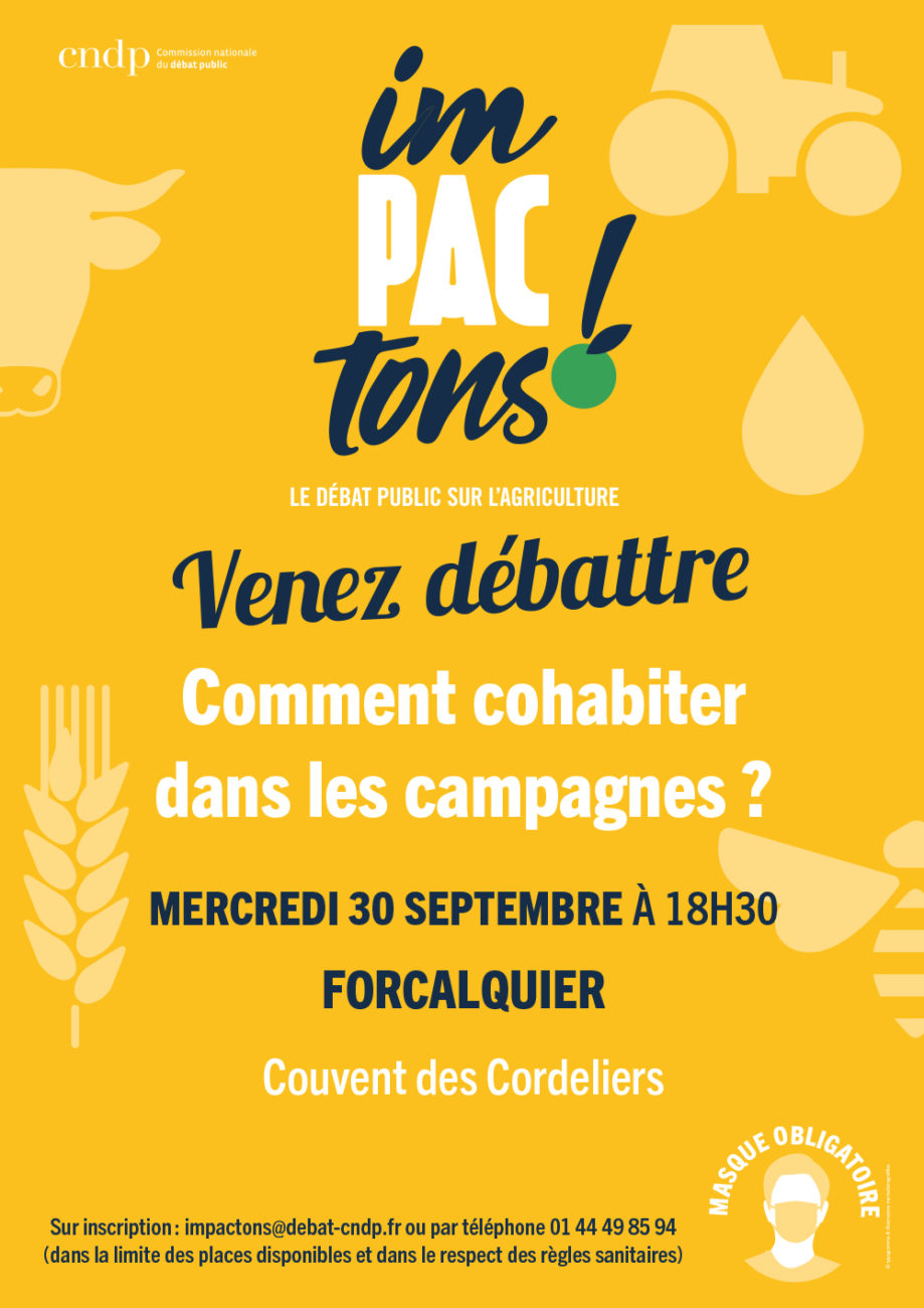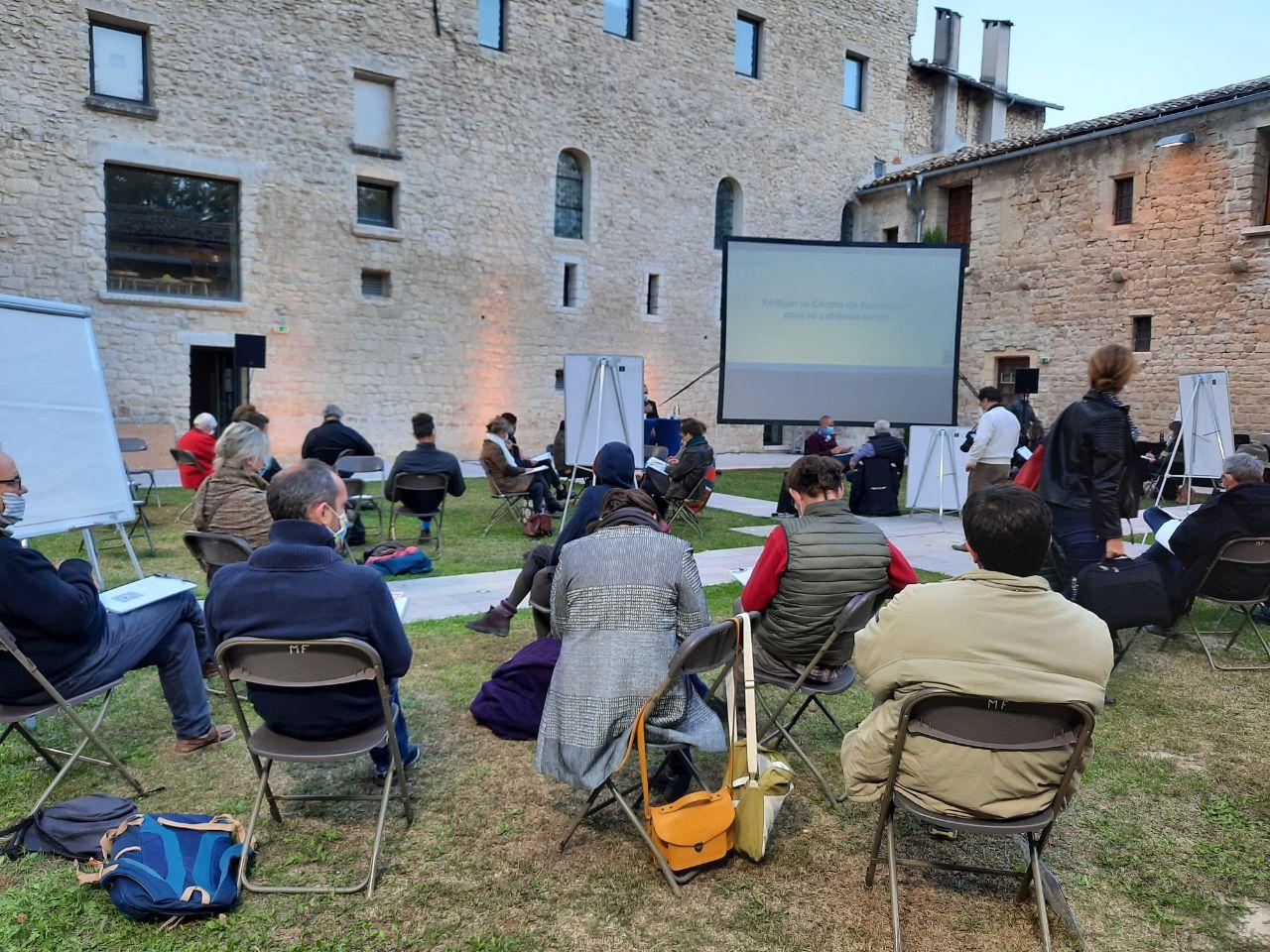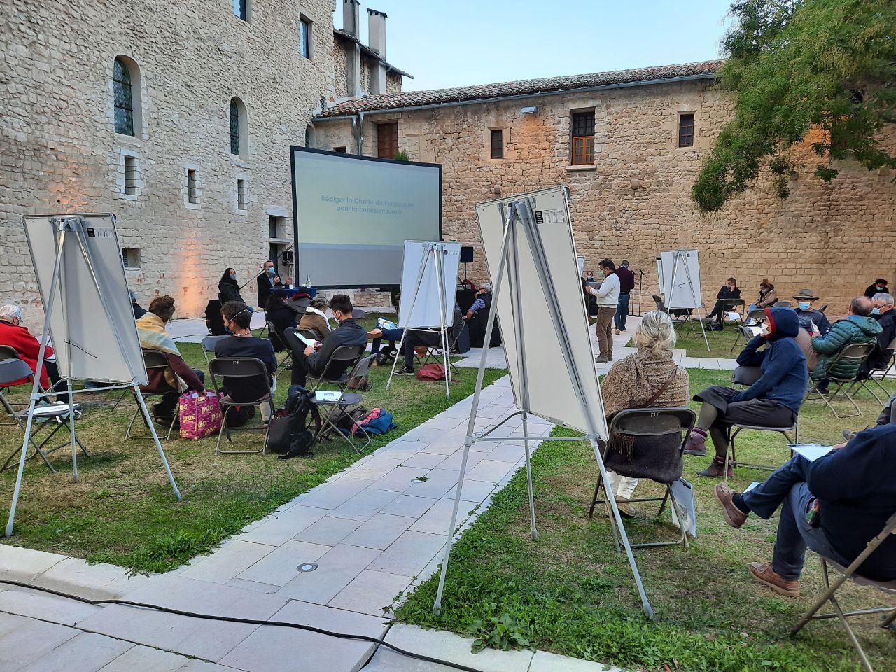 40 personnes (agriculteurs, représentants d’organismes publics, privés, associatifs et syndicaux, citoyens) ont participé à la réunion publique, ouverte à tous, le 30 septembre 2020 à Forcalquier, sur le thème « Comment cohabiter dans les campagnes ? ». Lors de cette réunion, les participants ont écrit une charte, à partir de l’expérience locale du bassin de Forcalquier, afin qu’elle serve de base de questionnement pour tous les territoires ruraux, au moment de définir leur politique de développement rural.